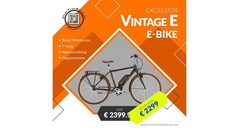 Mit dem E-Bike ExcelsiorVintage E in blau erhält man ein Bosch motorisiertes Cityrad mit 400 Wh Akku und einer 7-Gang Shimano Schaltung. Mit 48cm Rahmenhöhe ist das Excelsior E-Bike eines der kleineren E-Bikes auf 28 Zoll Rädern. Das ermöglicht kleineren …